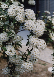 庭に咲いた「こでまり」です。 小さな白い花が集まった塊が たくさん枝についています。
