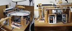 左の写真3はポリフォン社製24インチ・ディスク・オルゴールのディスクから演奏データをパソコンにCSVフォーマットで採りこむ採譜機で、あとりえ・こでまりが開発したもの。
