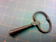 以前はナンシー・フラッティさんが12号から22号までのキーを販売( 20年前で1本15ドル )していましたが、製造していた工房が廃業したようです。彼女の提案でアンティーク時計の修理を行っている工房のサイトを探索。2社から大き過ぎると断られ、仕方がないのでe-bayを探索。アンティークのキーはたくさん在庫しているわけではないので、特定のサイズの巻上げキーを見つけることは大変困難で、その上高価です。私も半日かけて16号のキーを探し、1本だけの在庫を見つけて送料ともで40ドル≒5,000円を支払ったことがあります。